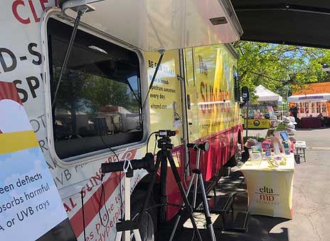 The Sun Bus is a charitable mobile Dermatology clinic that provides free skin screening, sun safety education, EltaMD sunscreen, Heliocare and Person and Covey samples at events.