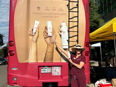 The American Academy of Dermatology (AAD) advises annual skin checks, yet accessibility remains a challenge for many. The Sun Bus is a mobile clinic with 2 exam rooms that allow convenient and accessible skin checks with the help of local dermatologists, Derm PAs and NPs, and volunteers.